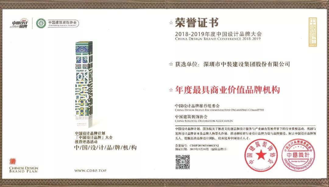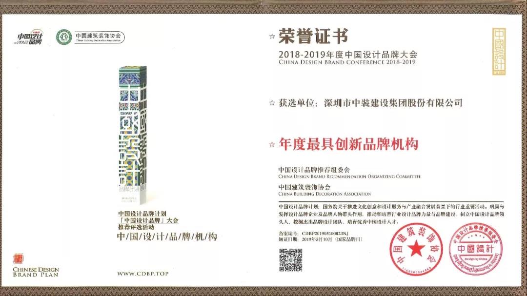 2014年,中裝建設(shè)獲評(píng)“深圳建筑裝飾設(shè)計(jì)十年功勛企業(yè)”,且連續(xù)多年蟬聯(lián)“中國建筑裝飾設(shè)計(jì)機(jī)構(gòu)五十強(qiáng)”榮譽(yù)稱號(hào)。2016年,在第七屆中國國際空間設(shè)計(jì)大賽中榮獲“中國建筑裝飾杰出辦公空間設(shè)計(jì)機(jī)構(gòu)”。2018年度,中裝建設(shè)榮獲“最具創(chuàng)新設(shè)計(jì)機(jī)構(gòu)”“最具影響力設(shè)計(jì)機(jī)構(gòu)”。