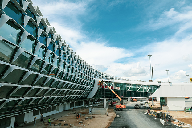深圳機場衛星廳及其配套工程項目,項目整體采用“X”型蝠鲼構造設計,與在營深圳機場T3航站樓交相呼應,集行李捷運、旅客航運、貨物集散等多功能于一體,計劃年底交付使用,屆時可滿足2200萬人次使用需求,為打造灣區國際空港,一流航空樞紐,全球貨物集散中心奠定堅實基礎。深圳機場衛星廳啟用后將對提升機場服務保障供給能力,增強機場在“雙區”建設和民航高質量發展中的硬實力、競爭力具有重要意義。