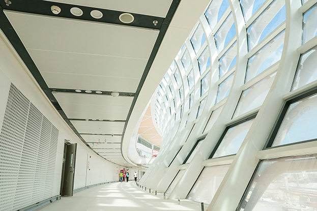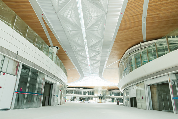 深圳機場衛星廳建筑面積23萬多平方米,由中央、東南、東北、西南和西北五個指廊組成,分為地上四層、地下一層。作為唯一參與精裝修的民營企業,中裝建設主要負責深圳機場衛星廳2-3層西南、西北指廊,西雙子星廣場的精裝修工程。